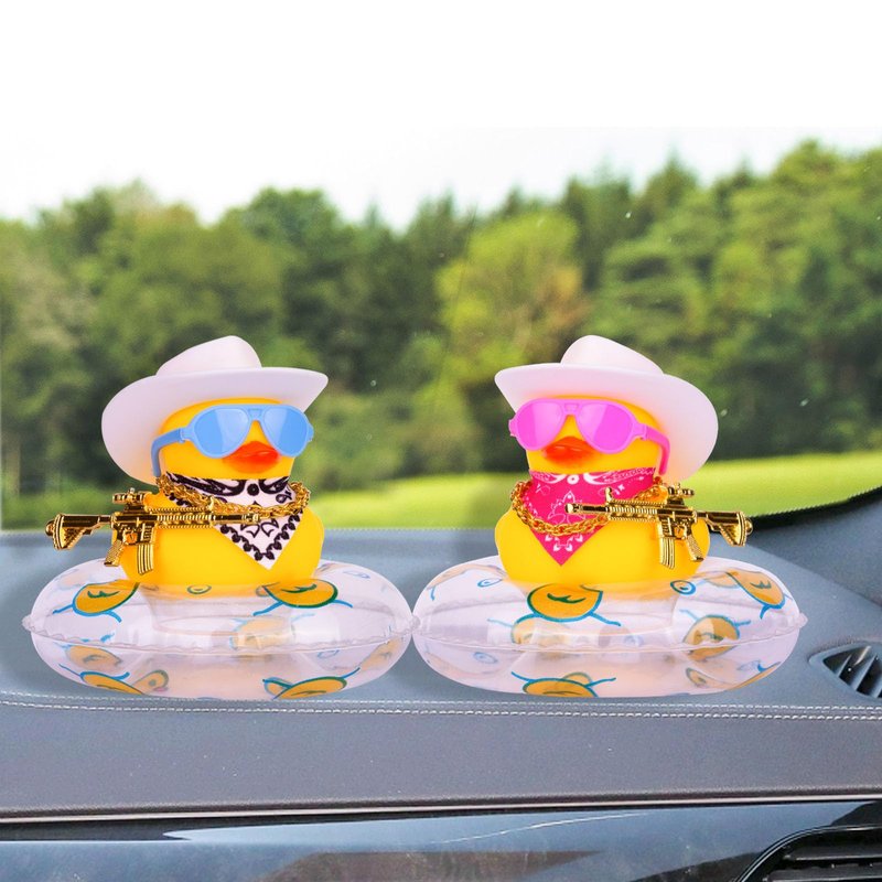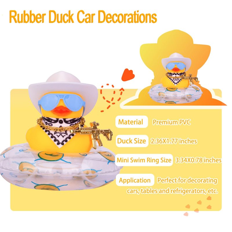 MuMyer Cowboy Duck Car Dashboard Decoration Swim Ring Car Rubber Duck Decoration Accessories with Mini Swim Ring Cowboy Hat Scarf Necklace and Sunglasses(D2-2 Bs-B_W&White)