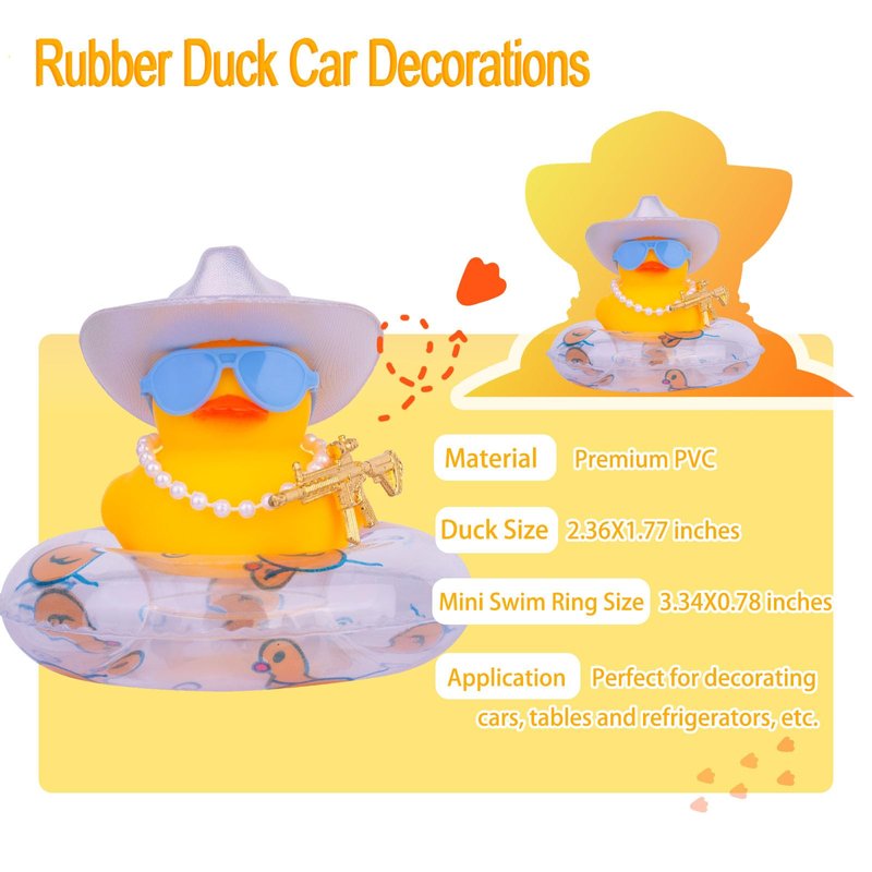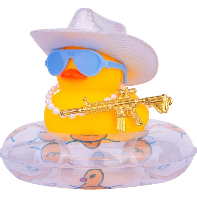 Cool Duck Car Ornaments Accessories with Mini Holographic Cowboy Hat Swim Tube Necklace Sunglasses and Special Prop