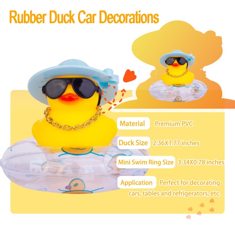 - Joy Creator: The rubber duck car decoration will make a lovely sound when you squeeze it, which can be a relaxing and pressure-relief toy to release your stress. The mini swimming ring is cute and exquisite. Perfect for birthday parties, school carnivals and pool parties.