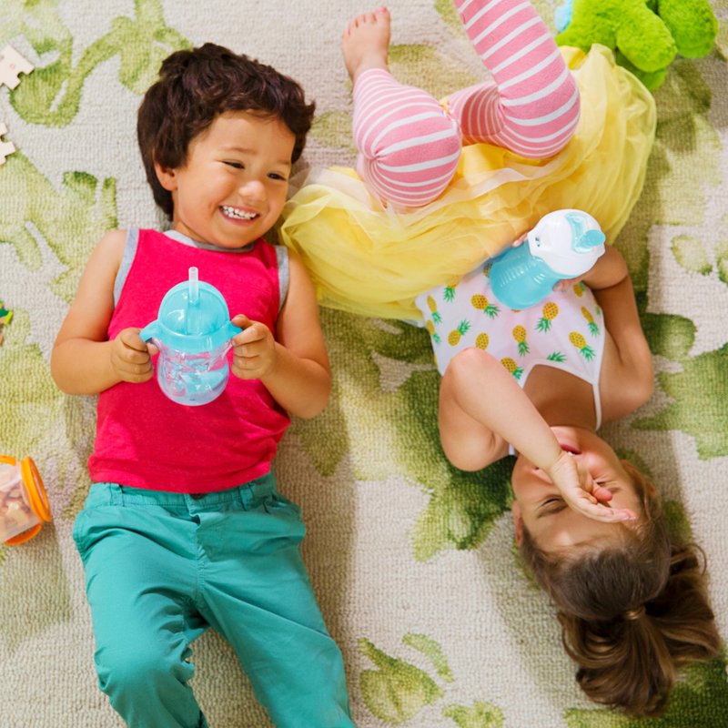 - Set of (2) sippy cups with 9 ounce capacity for water, milk or juice