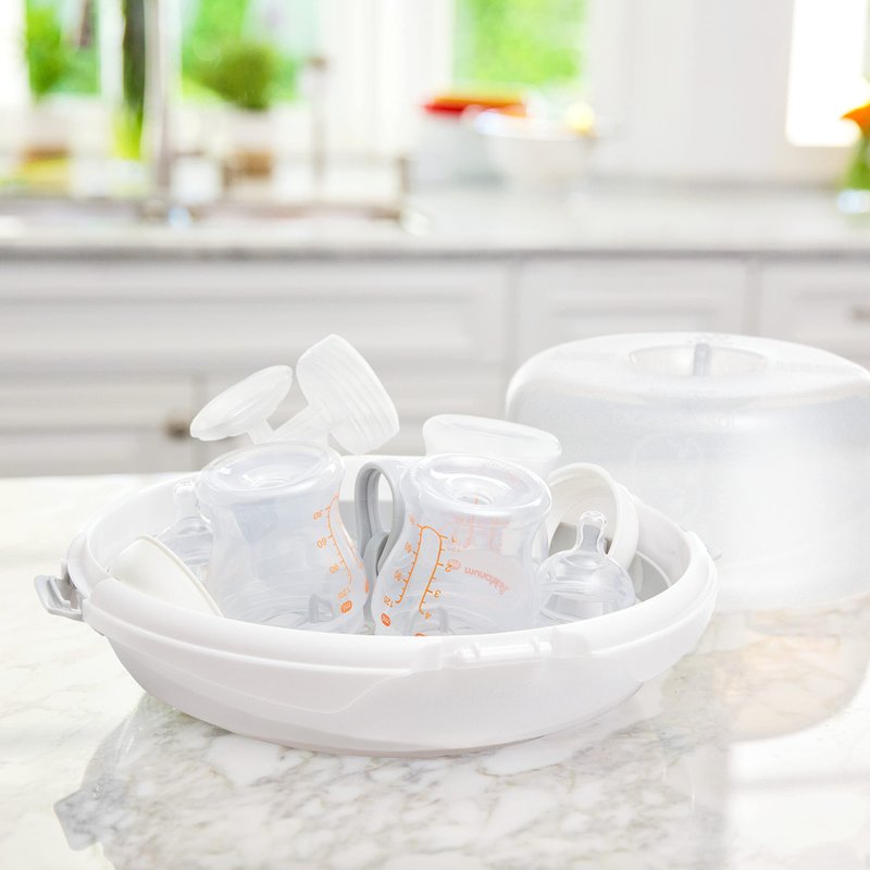 - Lightweight, compact microwave baby bottle sterilizer with heat-resistant handles