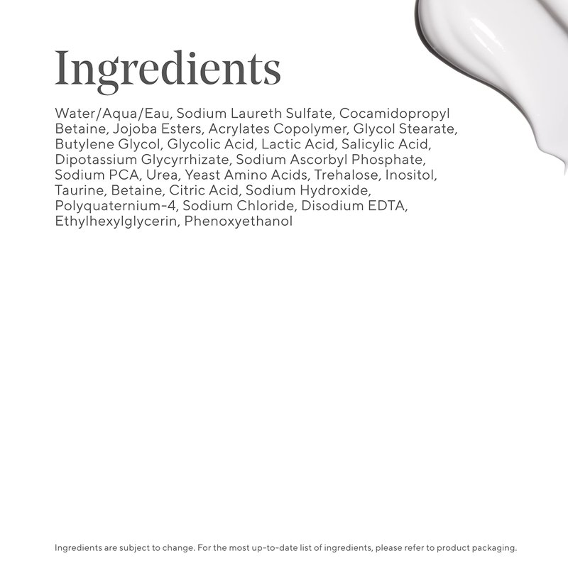 Triple-action cream cleanser exfoliates to clear dry skin from the surface and open hydration pathways to retain moisture. Formulated with salicylic, lactic and glycolic acids, jojoba beads and sodium PCA for fresher, smoother appearance,