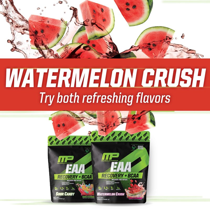 Muscle Pharm EAA Recovery + BCAAs, Post Workout Essential Amino Acids Powder, Pre Workout Energy Supplement for Men & Women with Branched Chain Amino Acids, 30 Servings (Watermelon Crush)