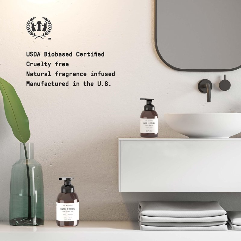 - HAND RITUAL - Luxurious foaming hand wash, quickly creates mounds of foamy lather, while naturally cleansing, moisturizing, and softening your skin. Buffs away heavy soils, dirt, grease, and grime while locking in moisture, rinses clean without leaving any sticky residue, formulated for all skin types, and gentle enough for the most sensitive skin. The rich foam consistency provides for an excellent rinse while reducing water usage