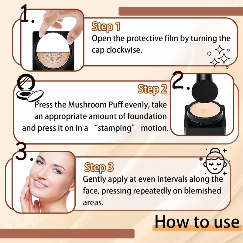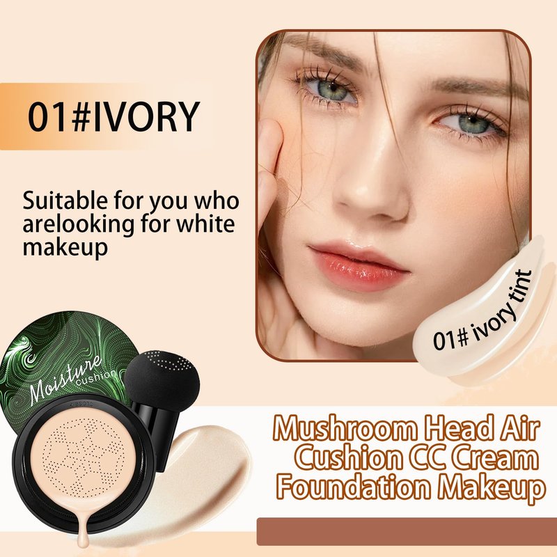 - 🍁【Moisturizing and Nourishing】Mushroom head air cushion cc cream contains moisturizing ingredients and a lightweight texture that gives your foundation a subtle,long-lasting moisturizing effect for a natural,lightweight look.