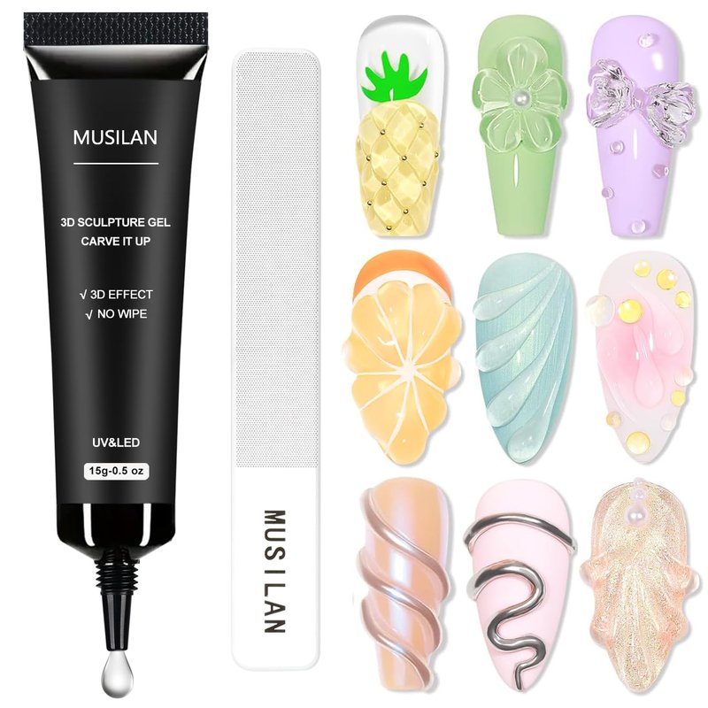 - 【Multifunctional 3D Nail Art Gel】MUSILAN Nail Molding Gel has various uses, it can be apply with other nail art products such as natural nails, nail tips, fake nails, false nails, acrylic nails,rhinestones, etc. This 3D Sculpture Gel can be use for mirror powder gel,builder gel,rhinestone glue and using the liner gel polish to draw colorful shape,also can be applied on phones case, shoes, tablets, guitar, etc.
