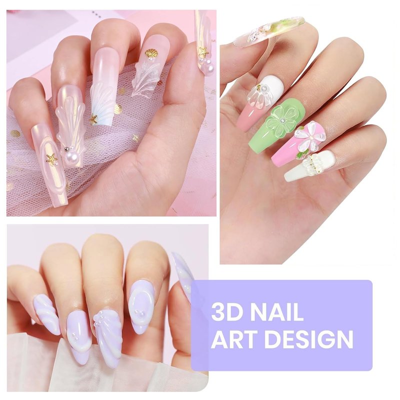 - 【Long-Lasting & Healthy】This 3D nail art gel is made of natural resin material with msds certificated,vegan and cruelty free, no unpleasant odor, peeling-off,no harm to skin and nail.As long as you follow the instructions and apply it correctly, this 3d gel nail art will last more than 28 Days.(Don't forget to cure it with a nail lamp and apply base coat and top coat gel. )