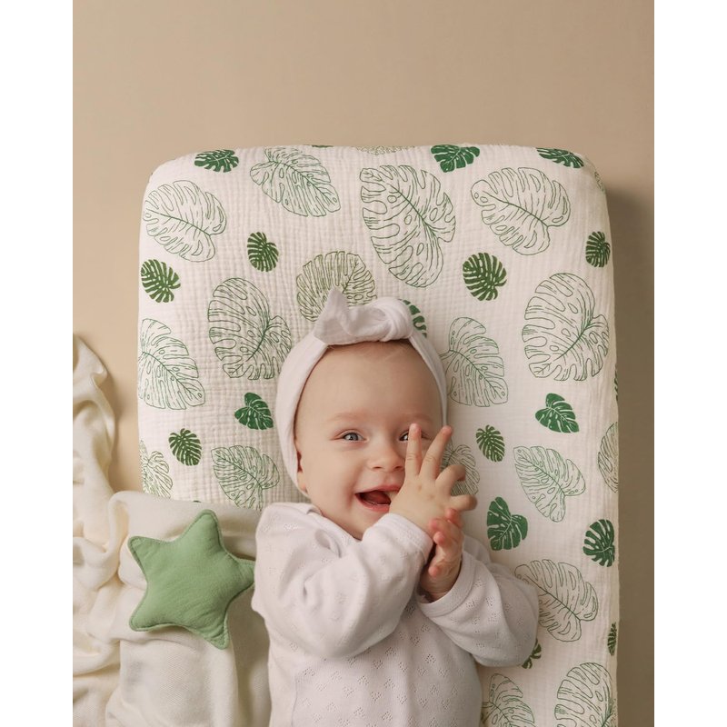 Muslin Changing Pad Cover for Baby Girls Boys, Cotton Natural Comfort Diaper Change Table Pad Covers, Ultra Soft Breathable Boho Changing Pad Sheets, 2Pack (Monstera Leaves&Dark Green)