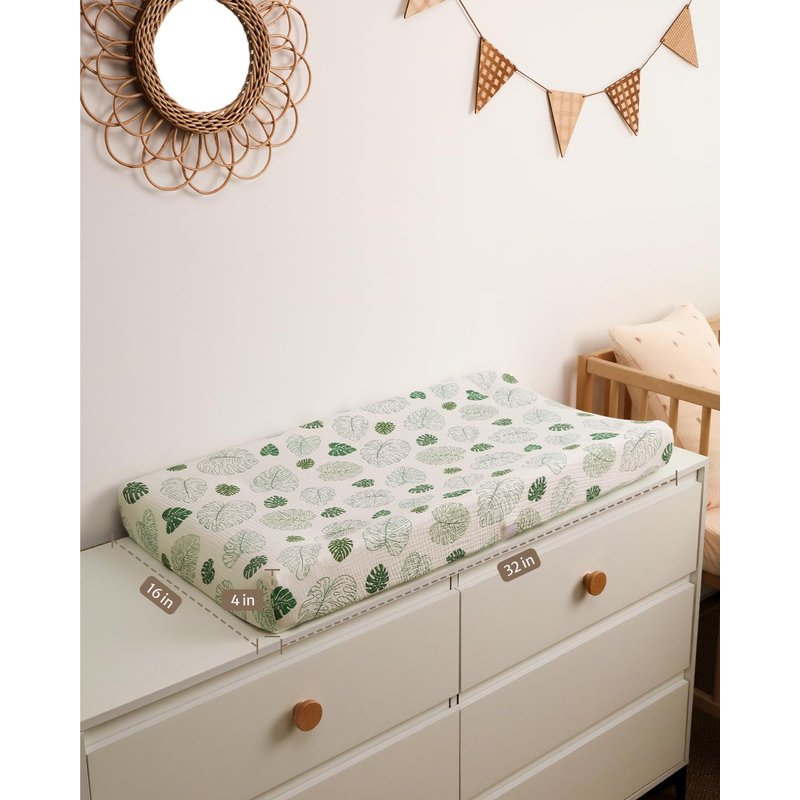 - 2 Pack Change Table Covers: Our boho changing pad cover is designed with a monstera leaves print, the perfect dark green color for your boho nursery decor. You will get two changing pad covers (Monstera Leaves&Dark Green), It is convenient for your daily replacement or washing.