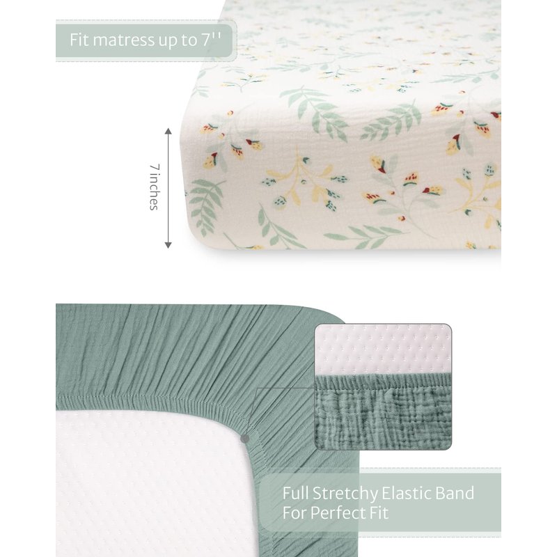 - Muslin Cotton: Made from muslin cotton with comfortable touch, our crib sheets are cozy and breathable. In addition, it will stay soft after every wash, which is ideal for your baby's delicate skin, and let your little one sleep better.