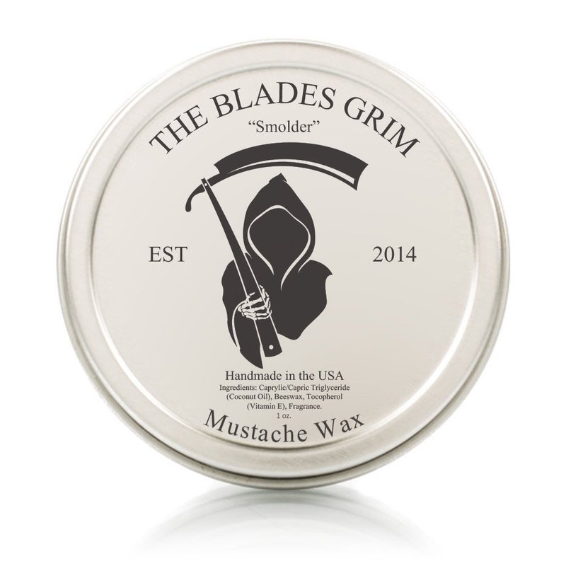 Like other Blades Grim products this is handcrafted in the USA with simple high quality ingredients. Designed to form and sculpt your facial hair, the mustache wax gives a good hold. "Smolder" scent is highly praised and available in all other beard care products. 1 oz of product that comes in a slip top tin. A little goes a long ways with this product. Scent is best described as a warm and toasty accord of creamy camphorous notes, subtle hints of citrus and a masculine gourmand base.