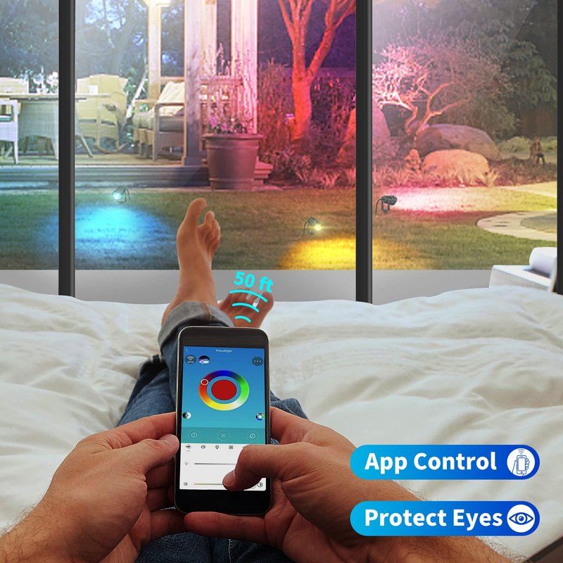 - Music Melody Rhythm Mode - Smart LED Spotlight can change the light color according to the rhythm of the music played on the phone. So when you are having holiday party, family gathering, this smart outdoor light can make the party more cheerful, also can be used to decorate Christmas, Halloween, wedding, garden party, etc., as a good stage lighting, landscape lighting, background lighting, outdoor spotlight.
