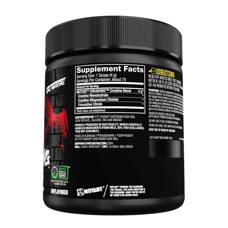 - Powerful Triple Creatine Blend – MUTANT CREAKONG features a potent 4g dose of a scientifically validated triple creatine blend (Creatine Monohydrate, Creatine-Magnesium Chelate, Tri-Creatine Citrate) to enhance strength, muscle size, and athletic performance.