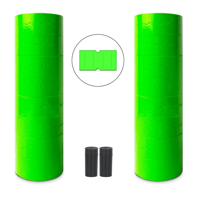 MX 5500 Price Gun Labels, 20 Rolls, 10,000 Labels Total, Includes 2 Ink Rollers (Fluorescent Green with Security Slits)