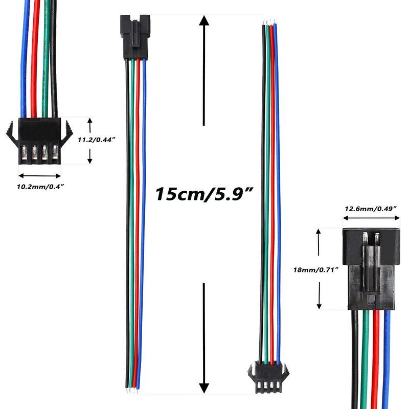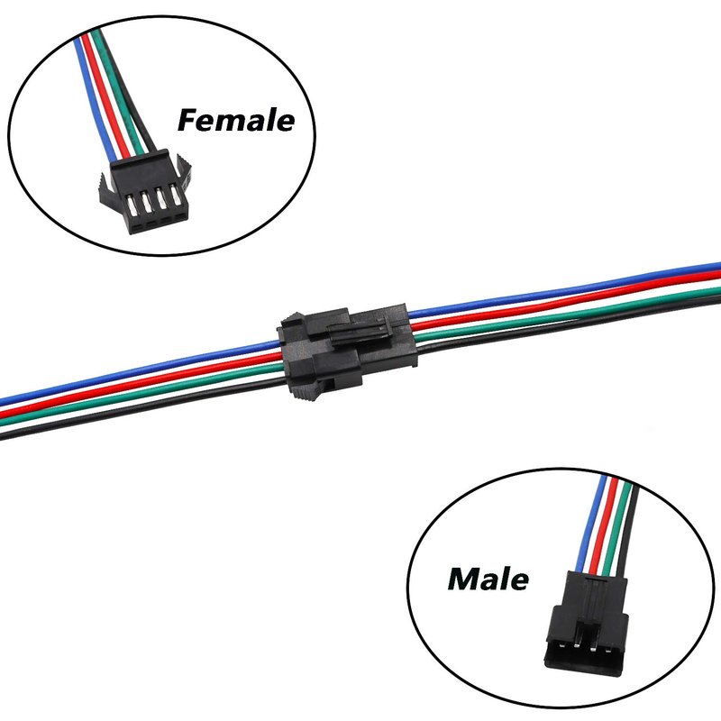 - Plug connector type: this product includes JST SM 4 pin plug male and female connectors, and they are matched, easy and convenient to install.Please check the colors of the wires and their respective polarities before connecting to your device(s).