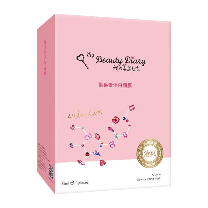 My Beauty Diary Arbutin Glow-boosting Mask, Firming and Smoothening Facial Mask, Restores Skin Radiance, Self Care Face Sheet Mask for Dull Skin and All Skin Types (8 pcs)