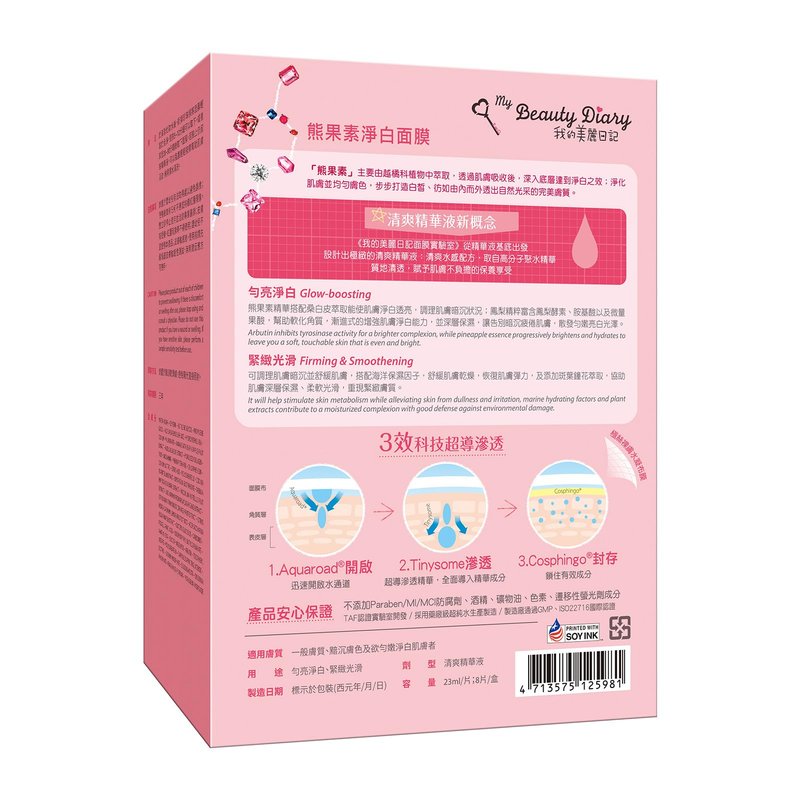 Arbutin Glow-boosting Mask contains rich arbutin, extracted from the lingonberry, penetrating deep into the skin to achieve a radiant complexion. The mask purifies the skin and evens out the skin tone, creating a perfect skin texture that looks as if it is naturally glowing.
