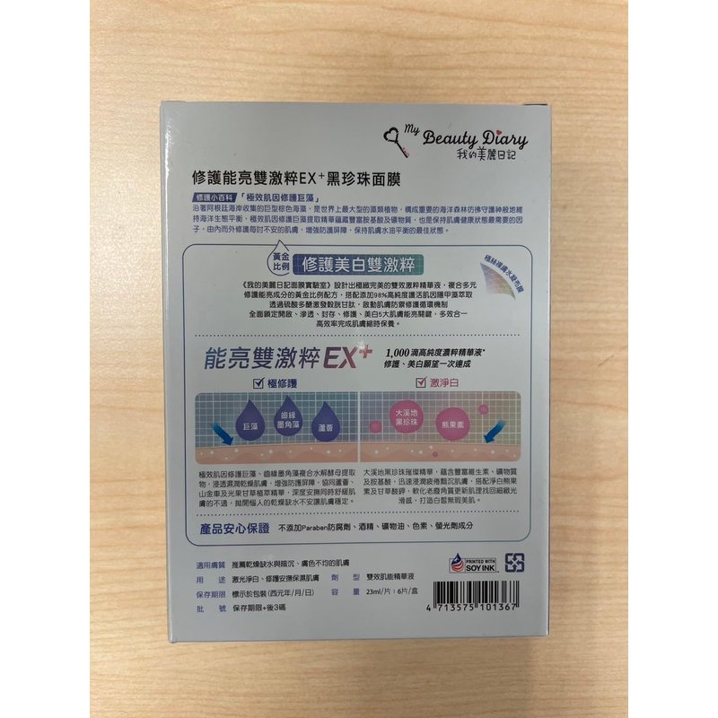 My Beauty Diary-Relieve Power Black Pearl EX+ Facial Mask, Face Mask, Facial Sheet Mask (6 pcs)