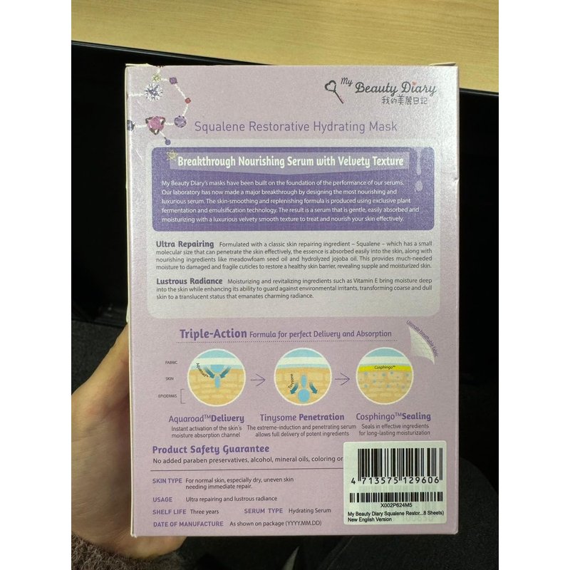 My Beauty Diary Squalene Restorative Hydrating Facial Face Mask (8 Sheets) - New English Version
