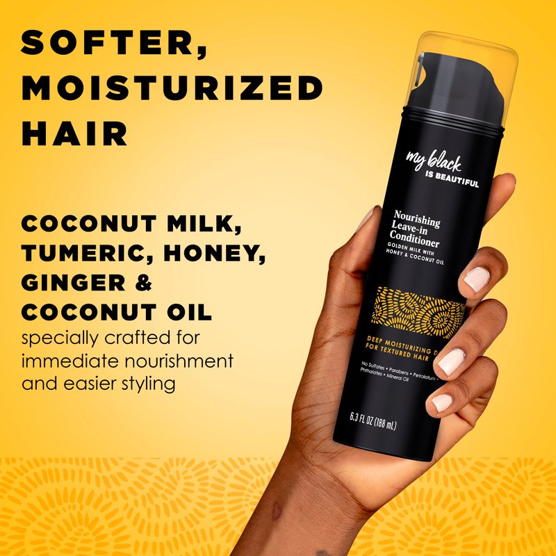 MY BLACK IS BEAUTIFUL Nourishing Leave-In Conditioning Cream, for Curly and Coily Hair with Coconut Oil, Honey, and Tumeric, 6.3 fl oz