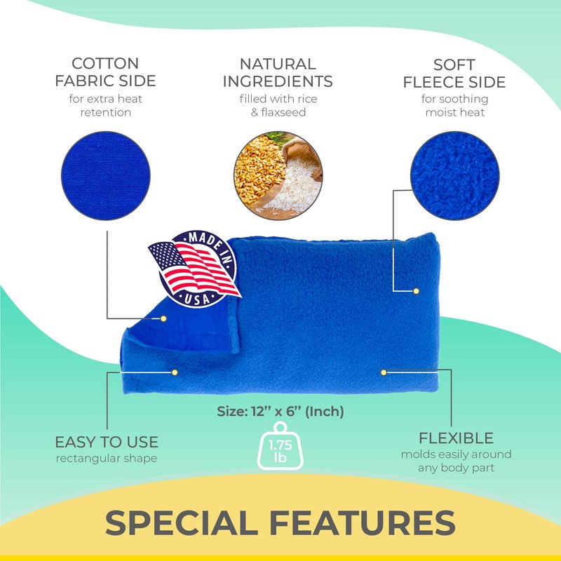 - PREMIUM QUALITY: Each hot therapy heating pad is made right here in the USA using the finest materials available. Our pain pad features a super soft fleece on one side that gently hugs your skin and provides you with calming heat while the cotton on the other side can be used for extra heat retention.