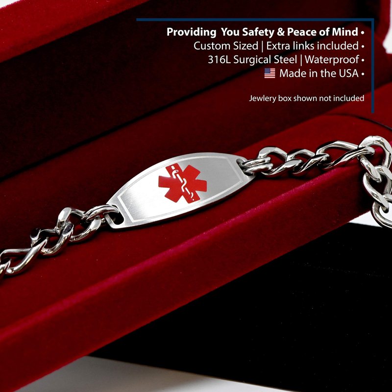 - EASY TO READ IN AN EMERGENCY: You will have peace of mind, stress free & relief knowing your medical alert bracelet can be easily read