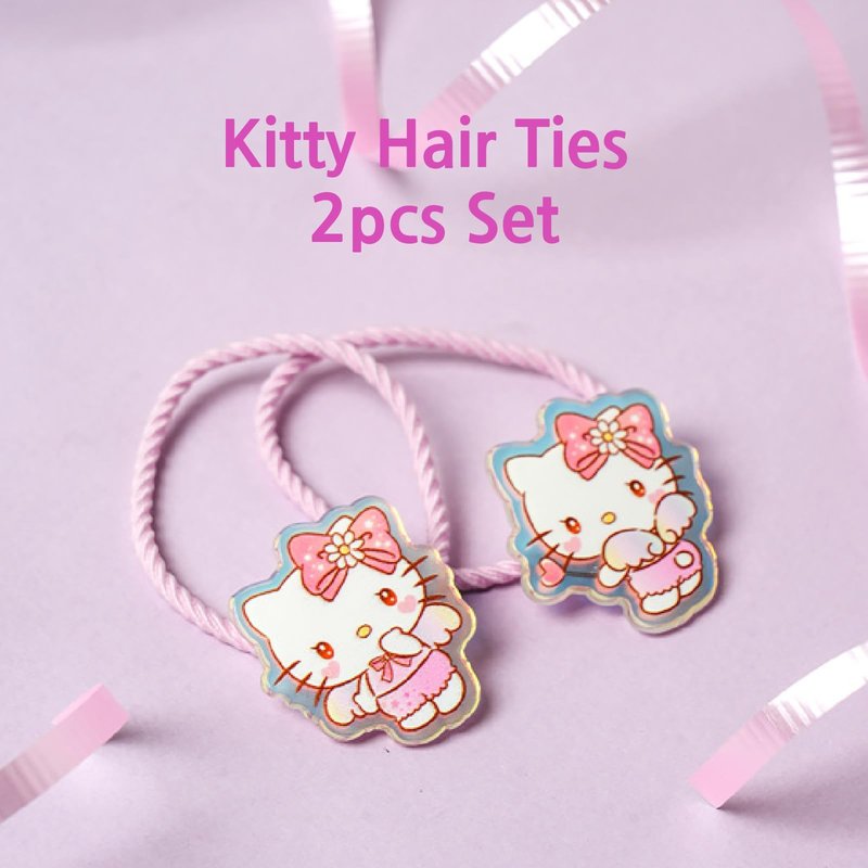 My Melody & Kitty Hair Tie Set - 2pcs Hair Band for Women, Ponytail Holders Hair Accessories No Damage for Thick Hair, Hair Elastics for Women - Pink (Kitty)