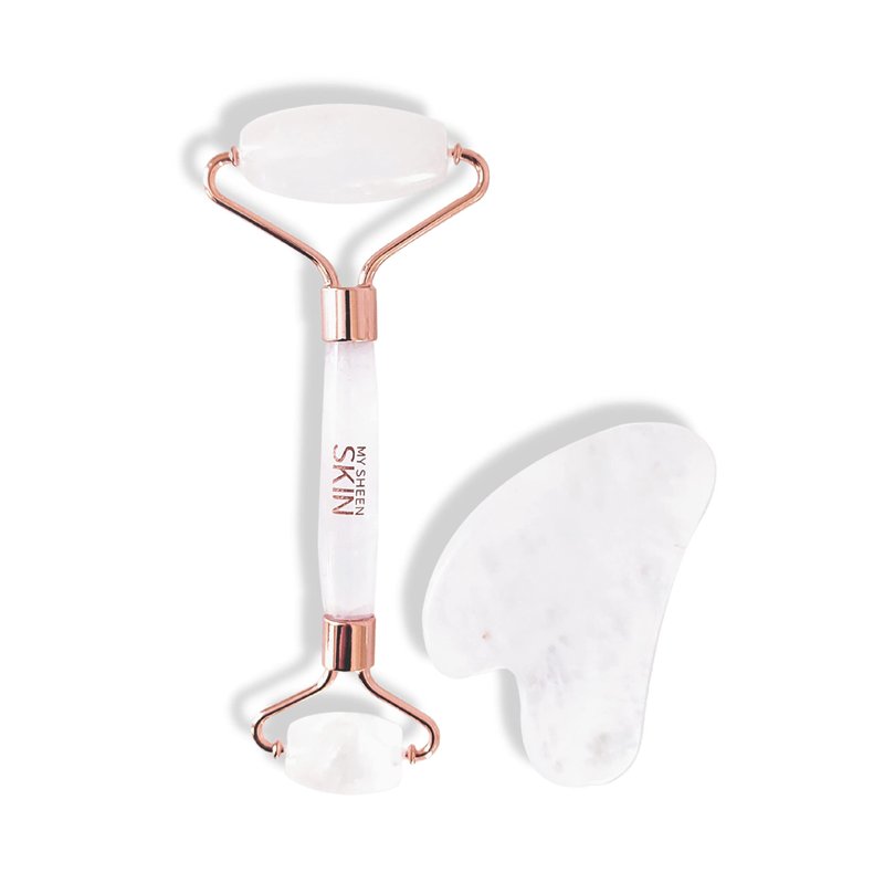 MY SHEEN SKIN Cristy Premium Face Roller & Gua Sha Set, Jade Roller Beauty Massage Tool, for Face, Neck and Body Muscle Relaxing, Relieve Fine Lines and Wrinkles Crystal Clear Quartz (White)