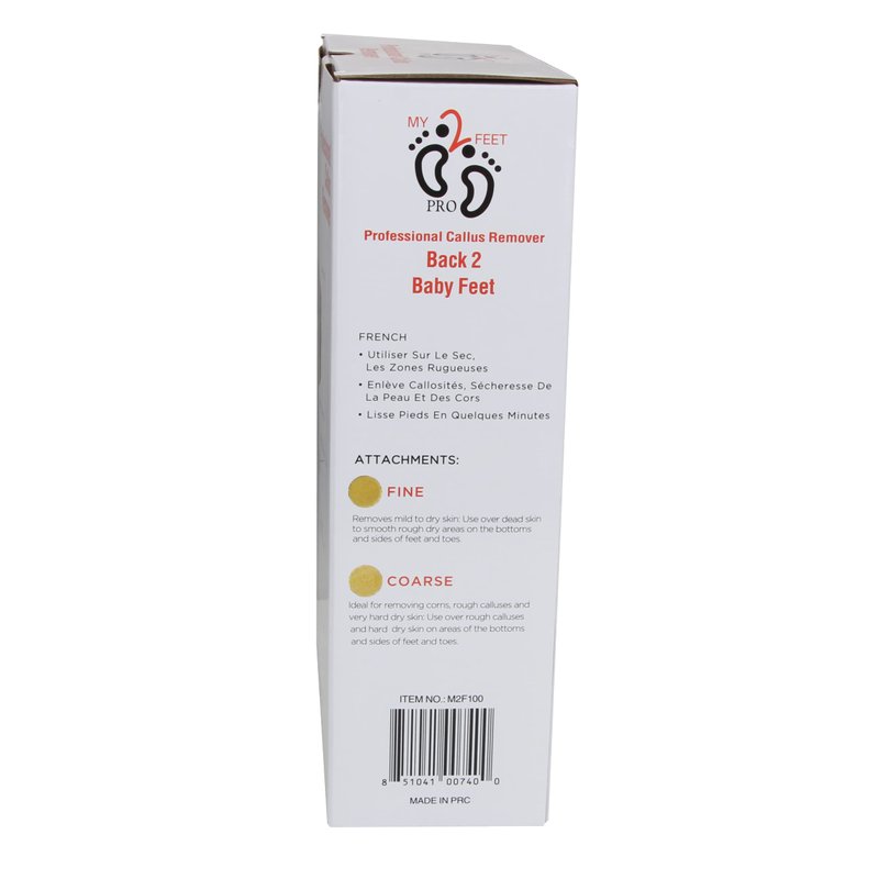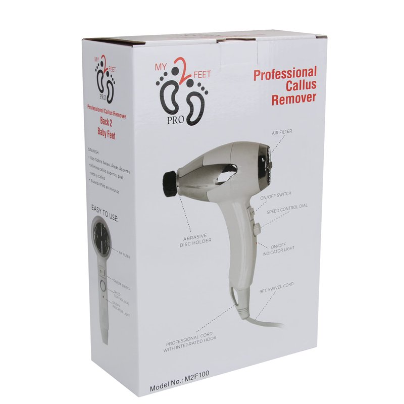 NEW & IMPROVED MOTOR *** REMOVE HARD CALLUSES AND CORNS, SMOOTH CRACKS WITH MY2FEET PROFESSIONAL Get smooth skin fast with My2Feet Professional Electric Callus Remover Now you can power your way to smoother, healthier-looking feet in minutes. This high-powered foot file includes 6 fine and 6 coarse disks. Use the fine attachment to remove mild to dry skin. Use the coarse attachment to help remove corns, rough calluses and hard dry skin. Adjustable speed control allows you to customize your treatment. Caution: Tool rotates very quickly. Start with lowest speed and use with a gentle touch, adjusting pressure and speed as needed.
