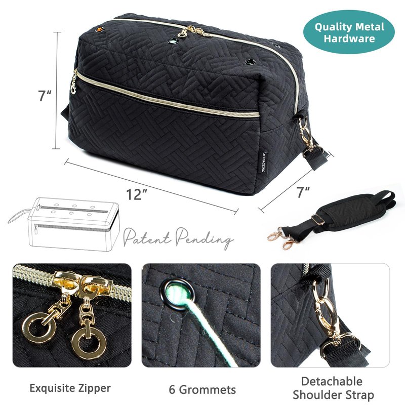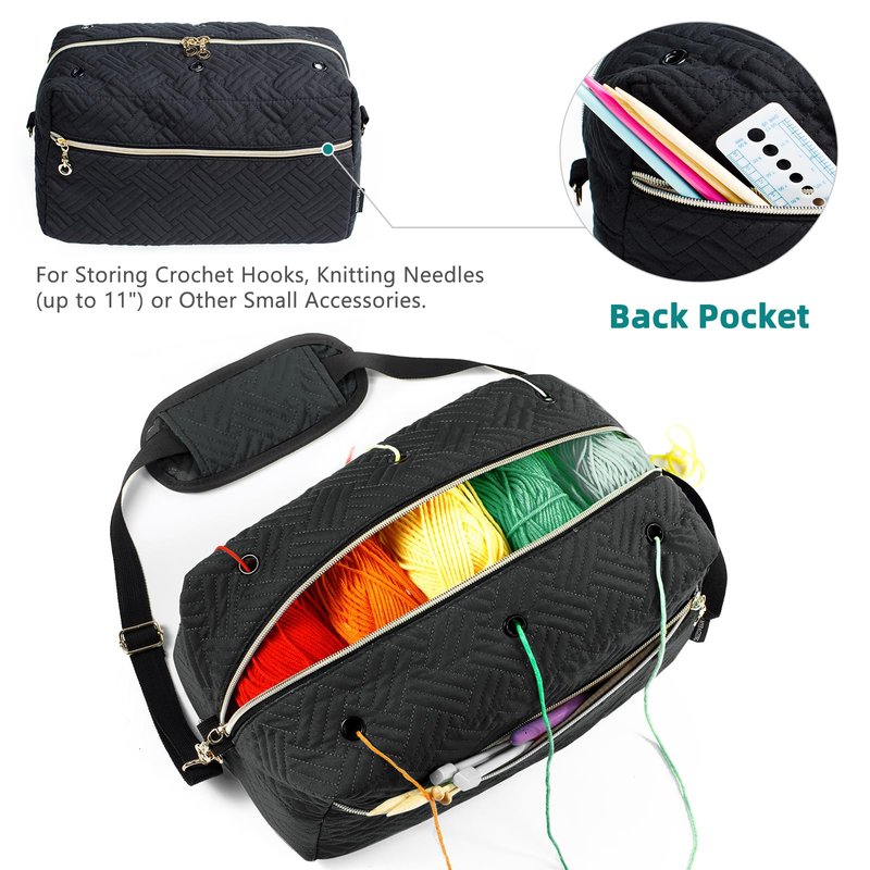 - 🧶【NO TANGLED YARN】 - Large size crochet bag is With 6 metal stainless grommets, Designed to keep your yarn tangle-free and easy to access with grommets to prevent yarn threads from tangling. One diagonal pocket can fit up to 12" knitting needles.