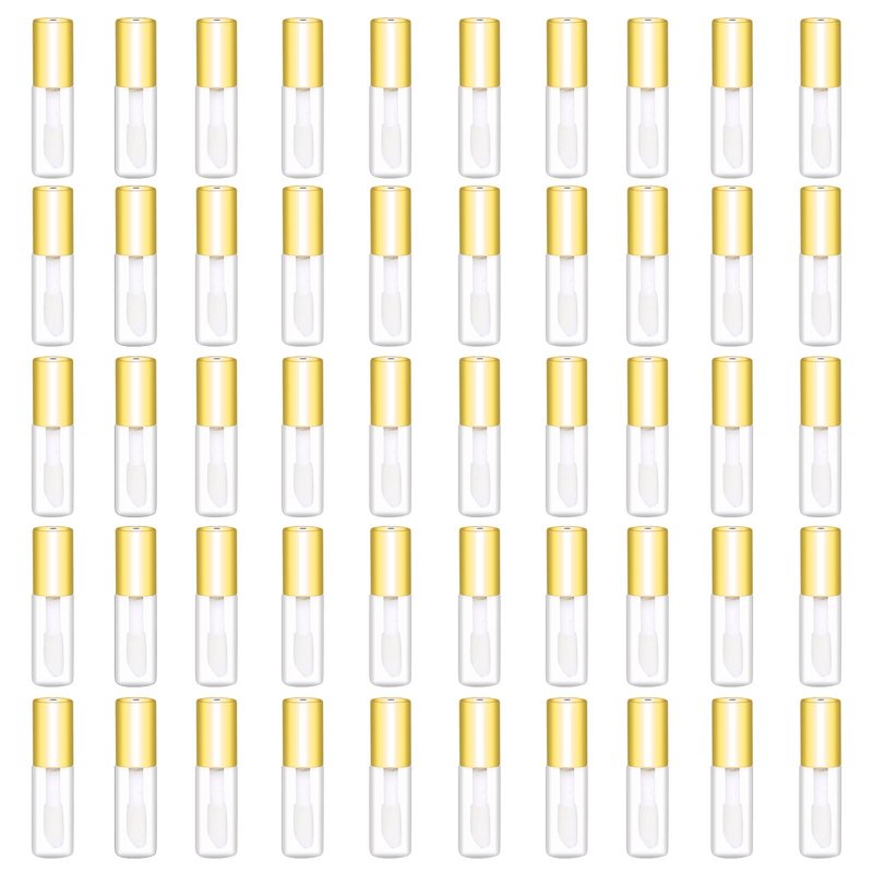 Mydio 50 Pack 1.2ML Clear Mini Lip Gloss Tube Empty Lip Balm Containers With Gold Lid for Lipstick (Gold)