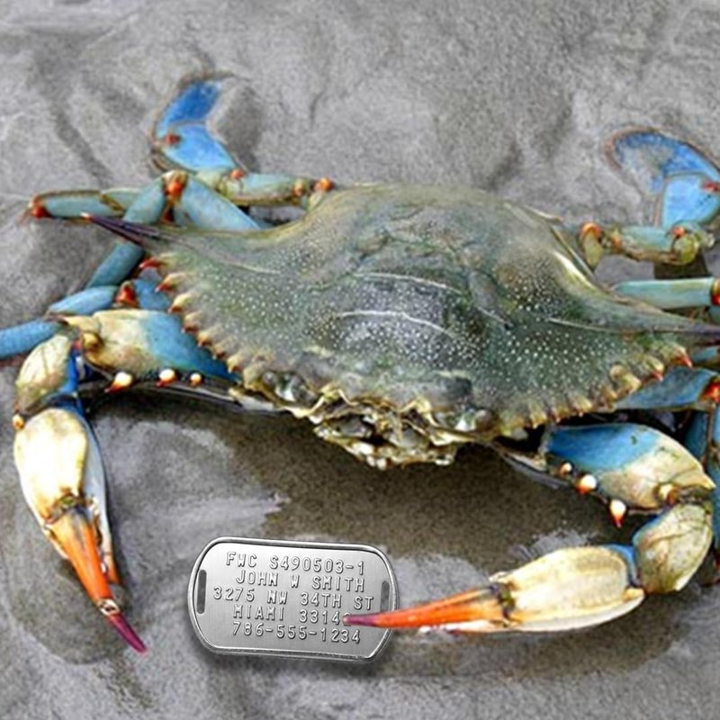 Set of 5 rust-proof customized FWC (Florida Wildlife Commission) Crab Trap Identification tags. Slotted on both sides for securely attaching to your trap with the included UV resistant nylon Zip-Ties. Our tags comply with the FWC regulations which state: The Florida Fish & Wildlife Conservation Commission requires ID tags to be attached to each recreational saltwater crab and fishing trap (up to a maximum of 5) to identify the owner. The information must be legible and be permanently attached to each trap on a saltwater proof tag.