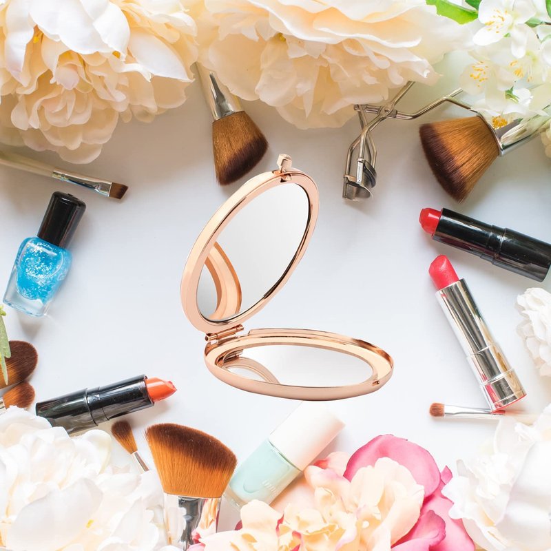 - ✪Material&Size:Material: Mirror shell is made of iron and high gloss rose gold laser engraving, using electroplating process, to ensure no fading, laser fine engraving, clear and sharp; Size 2.6*2.8*0.4inch, fashionable and portable, can be easily loaded into the wallet, handbag, makeup bag, carry, anytime, anywhere makeup.