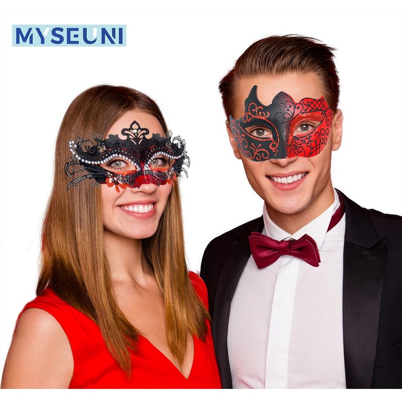 Here is a set of Venetian red masquerade masks for all couplesHandcrafted Masquerade Masks Designed for All Day/Night ComfortWith this shiny rhinestone mask pair with a handsome men's Venetian ball mask, you will give the lasting appearance of a life time at any eventSuitable for couples or dating, birthday parties, Carnivals, Masquerades, Mardi Gras, Halloween, Fashion shows, Wedding themes, Nightclubs, Cosplay, Nights club, Cocktail Party ball, etcIf you are planning a mascarade ball or party, please order MYSEUNI masquerade mask.
