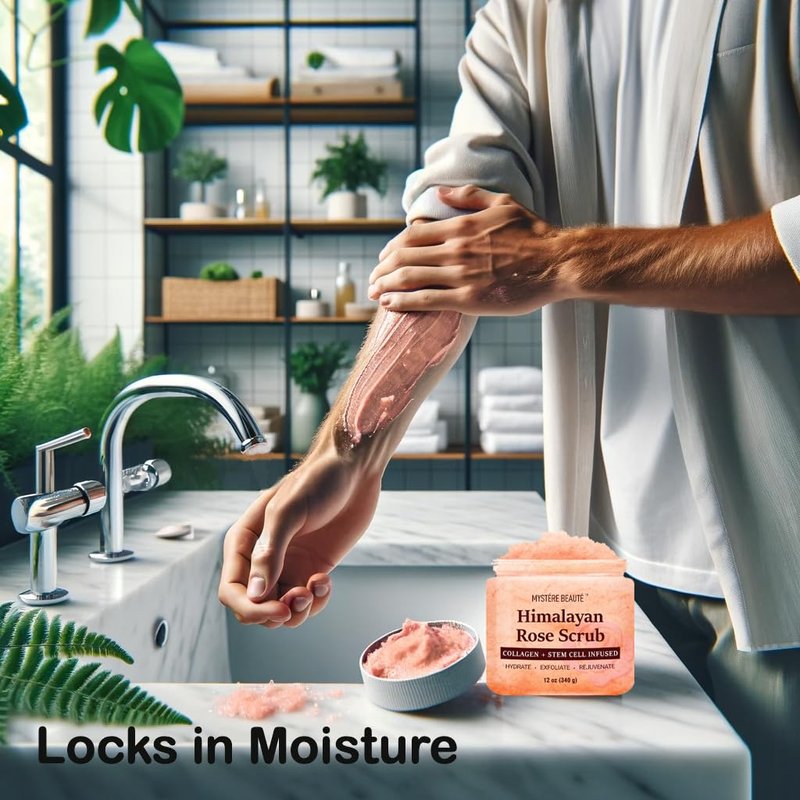 - A Massage of Roses - Mystere Beaute Pure Himalayan Pink Salt Scrub exfoliante para el cuerpo is formulated with powerful natural ingredients such as Rose Oil, Sweet Almond Oil, Lavender Oil and Coconut Oil. Rose Oil promotes an even skin tone and healthy complexion. Use as a body scrub, scalp scrub, hand scrub or foot scrub! Our Salt Scrub body scrub exfoliator Detoxifies & Hydrates skin while containing No Harmful Chemicals.