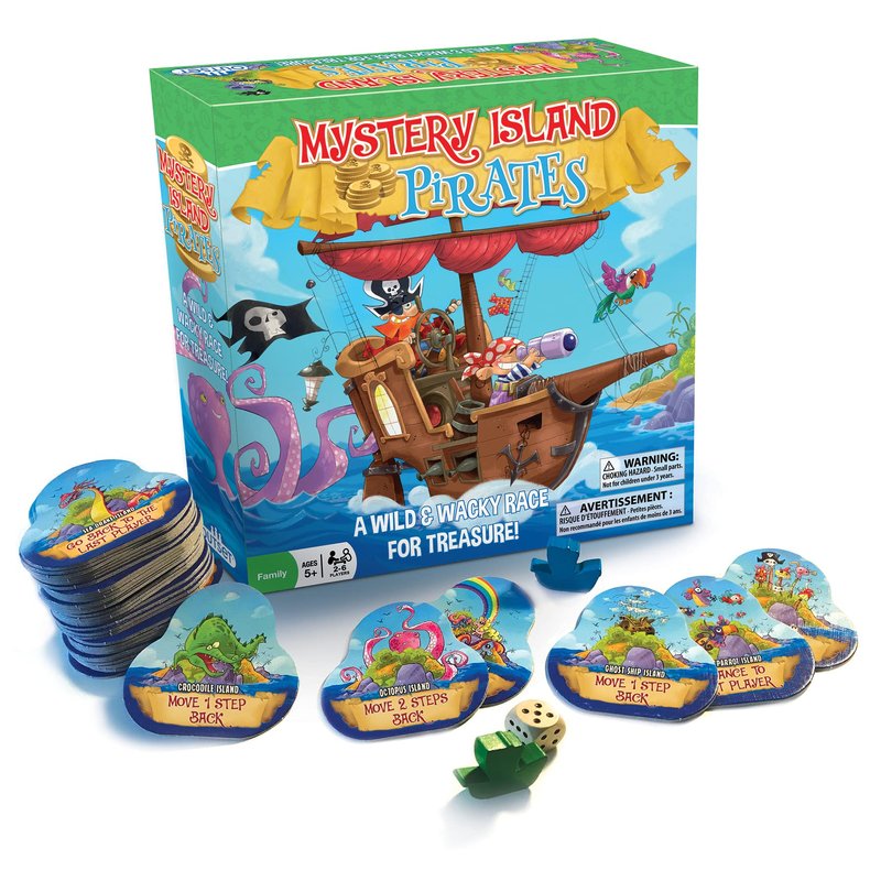 Mystery Island Pirates - Tile Game, by Outset Media, A Wild & Wacky Race for Treasure, Build Your Own Game, Two Games in One Box, Perfect for Family Game Night & Children, for 2-6 Players, Ages 5+