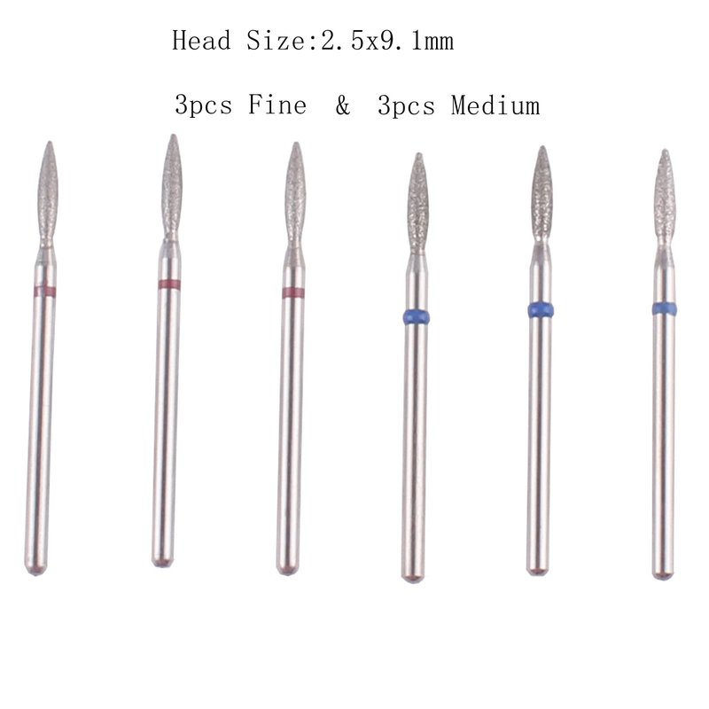 MZCMSL Flame Shape Diamond Cuticle Nail Drill Bit Set, 6pcs Pro Manicure Drill Bits for Nail Prep, 3/32 Shank efile Bit(Fine+Medium)