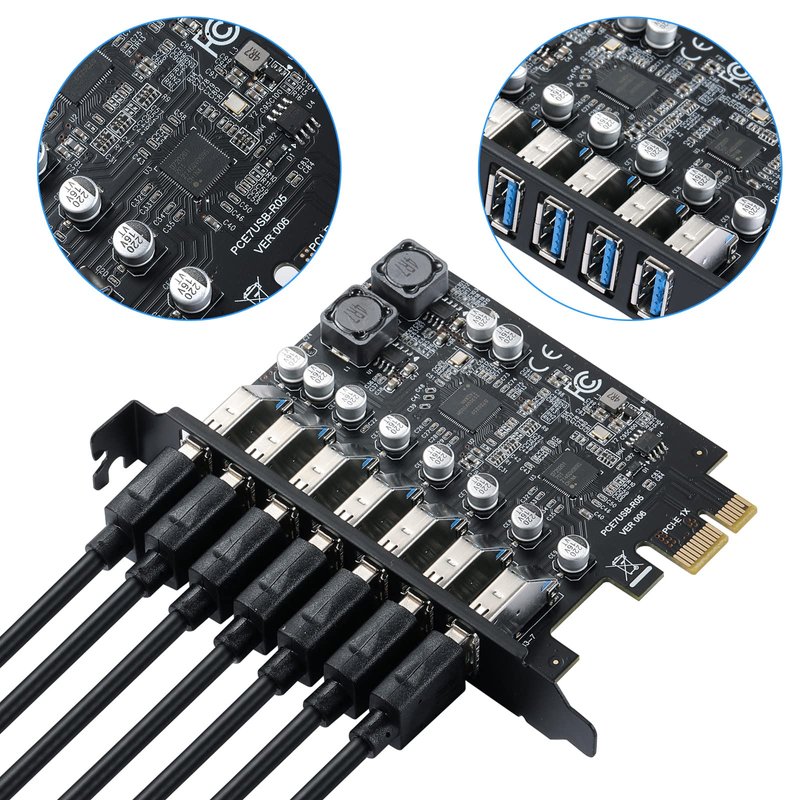 MZHOU 7 Port PCI Express Expansion Card, USB 3.0 7 Port Front Expansion Card, Connect 7 Devices Expanded