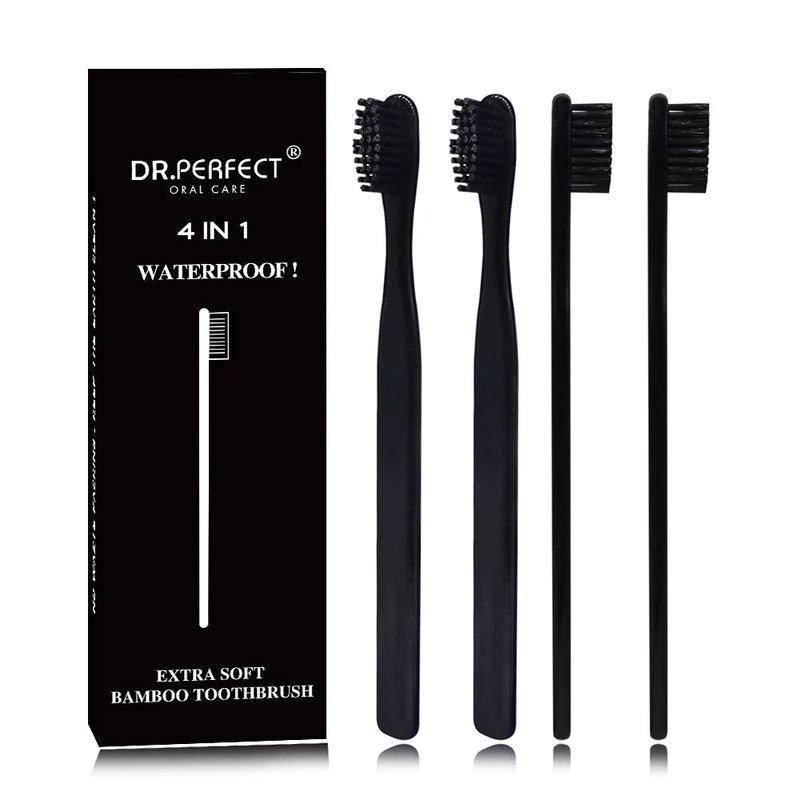N-amboo Bamboo Toothbrush Soft Bristles Manual Toothbrush Adult Toothbrush Pack of 4 Painted Black