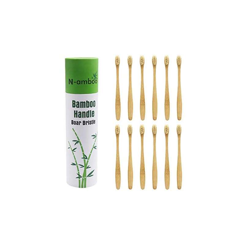 N-amboo Boar Bristles Natural Bamboo Toothbrush Eco-Friendly Biodegradable Zero Waste Pack of 12