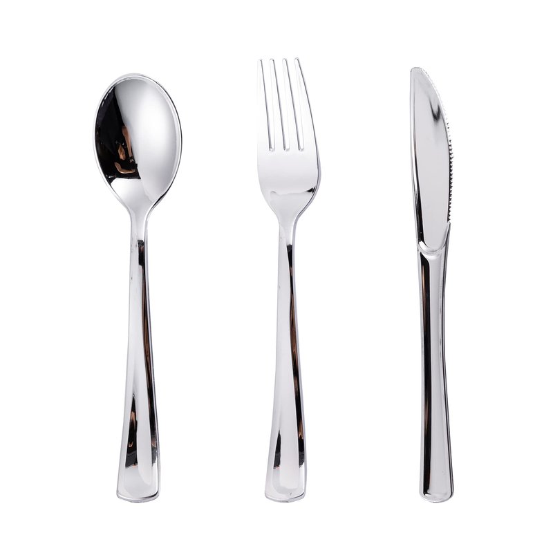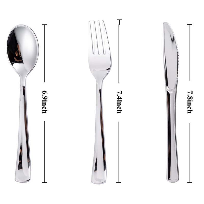 - STURDY & ELEGANT: N9R silver disposable silverware have a smooth surface, providing the same shine as real silverware. Our plastic utensils are heavy-duty and durable, so you can use them without worrying about breakage.