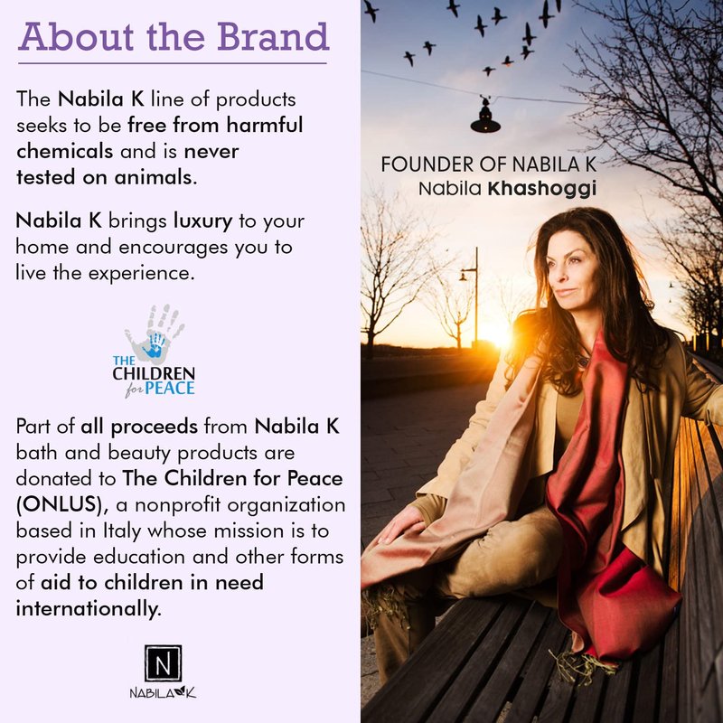 Each bubble bath uses naturally derived ingredients and the finest essential oils, emulating nature's most evocative scents. These bubble baths also can be used as shampoo and body wash! Nabila K bath products make a great gift for those in your life who deserve to relax and get pampered. Great for a holiday gift basket!