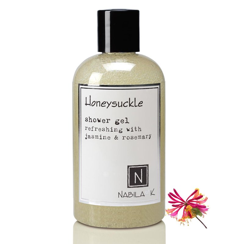 - Cleanse your body without upsetting your conscience with Nabila K's Honeysuckle Shower Gel. Naturally-derived and sustainably sourced, this body wash blends fragrant honeysuckle with overtones of jasmine and rosemary for a truly unique bathing experience.