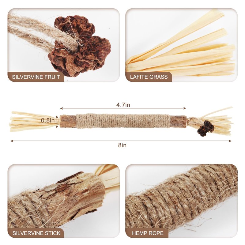- 【Nice Cat Chew Toys】4 pieces silver vine sticks cats in a package, sufficient quantity to meet the needs of the cat for play let them pet spend a good day. Please take proper supervision when cats playing to prevent them from swallowing the feather.