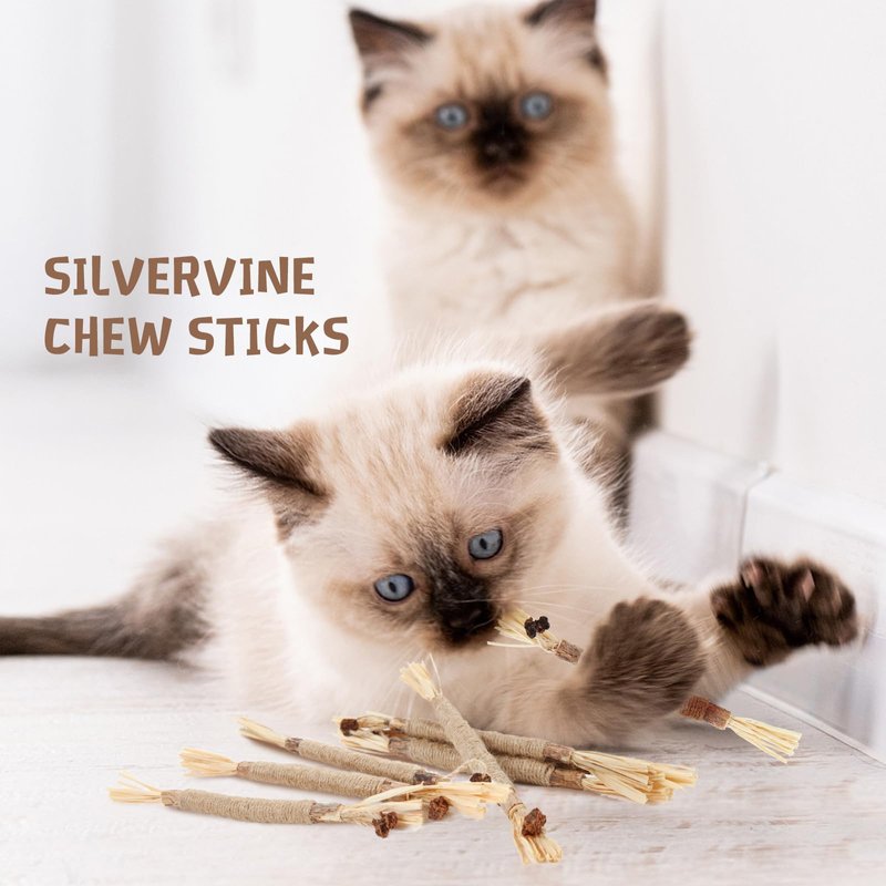 - 【Silvervine Sticks for Cat】The insect fruit on the catnip toy are natural materials that easily attract cats to interact with you by chewing, rubbing, licking, rolling, running. It also make them feel funny and relaxed and offer your cats exercise to keep pets healthy.