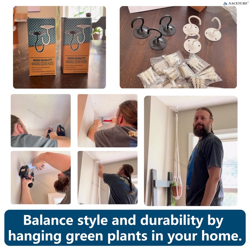 - ๐จ STURDY AND DURABLE CONSTRUCTION - NACETURE Plant hanger hook design ensures stability and strength, suitable for interior and exterior use, indoor plant hangers from ceiling, kitchen, balcony, garden, or any place in your home.