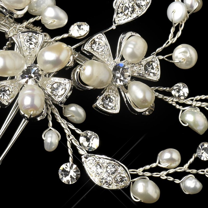 Nadine Freshwater Pearl & Rhinestone Floral Hair Comb Wedding Bridal Special Occasion