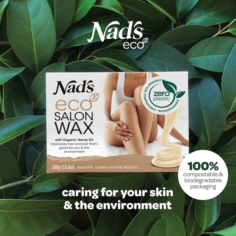 - Nad's Eco Salon hard wax kit is plastic free, compostable, biodegradable tub and wooden spatula, 100% recyclable packaging and vegan formula.