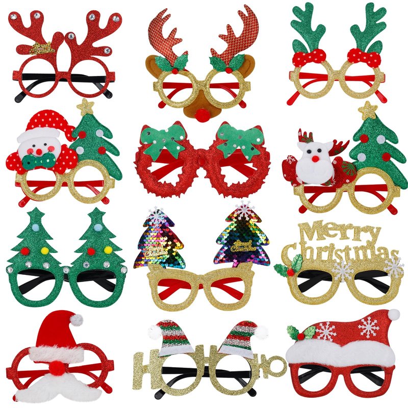 - [Easy Package] It includes 12 multiple styles of Christmas Glitter Glasses Frames. Lightweight and easy to wear.