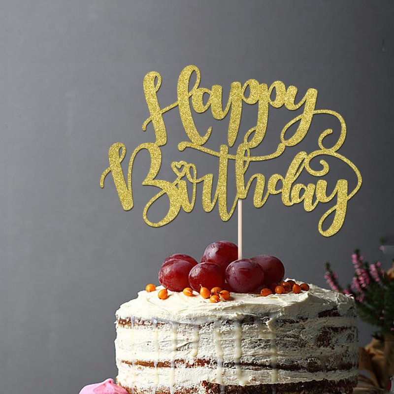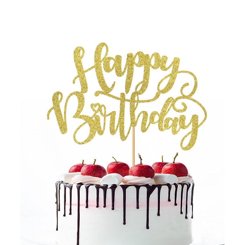 Naicaek Handmade Glitter Happy Birthday Cake Topper,Birthday Party Cake Decorations, Anniversary/Birthday Party Decoration Supplies (Gold)